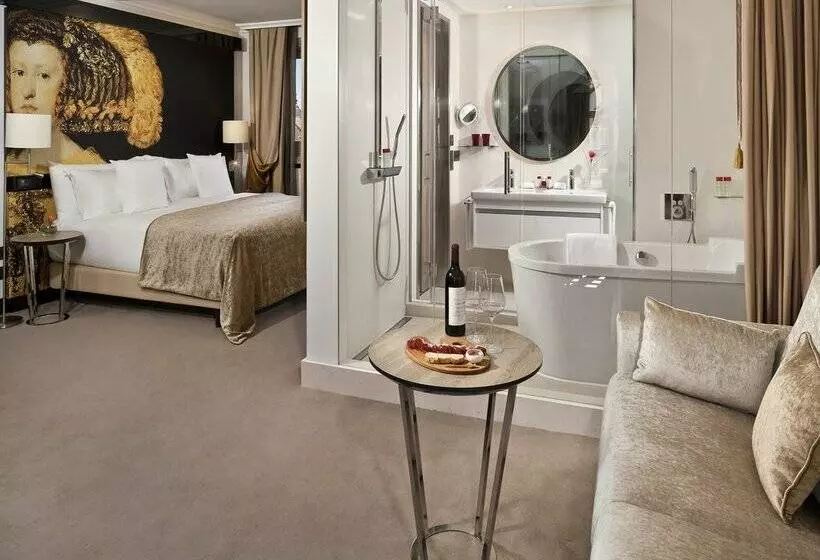 Palacio De Los Duques Gran Meliá is a luxurious 5-star hotel located at Cuesta de Santo Domingo, 5 in Madrid. As part of The Leading Hotels of the World, it offers exceptional accommodations and services. The hotel combines historic charm with modern amenities, providing a unique experience in the heart of the city. Enjoy elegant rooms, fine dining, and a range of facilities designed for comfort and relaxation. Perfectly situated, it allows easy access to Madrid's cultural attractions, shopping, and vibrant nightlife.