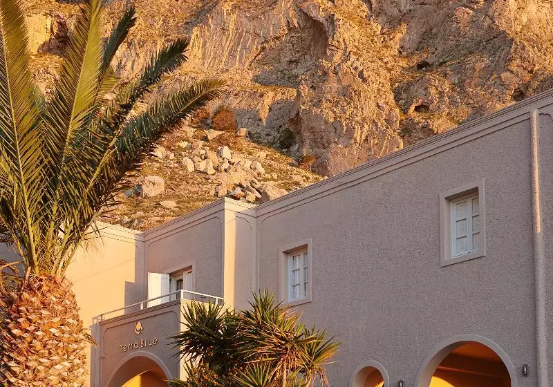 Terra Blue Santorini is a 3-star accommodation located in Kamari, a charming coastal village on the island of Santorini. Known for its beautiful black sand beaches and vibrant nightlife, Kamari offers a variety of dining and entertainment options. Guests can enjoy the stunning views of the Aegean Sea and the iconic sunsets that Santorini is famous for. Terra Blue provides a comfortable stay with convenient access to local attractions and the beach.
