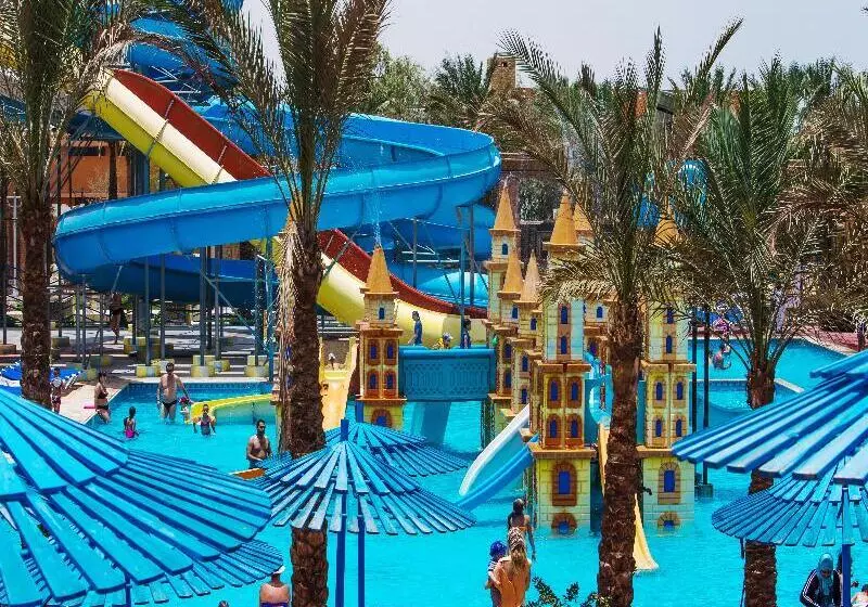 Mirage Bay Resort & Aqua Park is a 5-star accommodation located at 17 Hurghada, Safaga Road, P.O. Box 53 in Hurghada, Egypt. This resort offers a blend of luxury and entertainment, featuring an aqua park for fun-filled activities. Enjoy the beautiful surroundings and a variety of amenities designed for a relaxing stay.