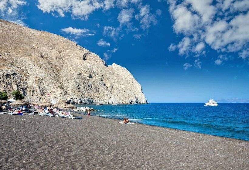 Spiridoula Villa is located near Perissa Black Sand Beach on Santorini Island. This accommodation offers a convenient and picturesque setting for guests looking to enjoy the stunning beaches and unique landscapes of Santorini. The villa provides a comfortable stay, making it an ideal choice for travelers seeking relaxation and exploration in this beautiful Greek destination.