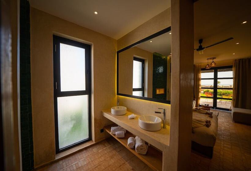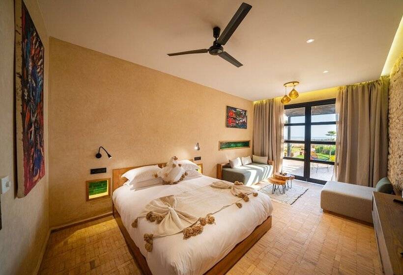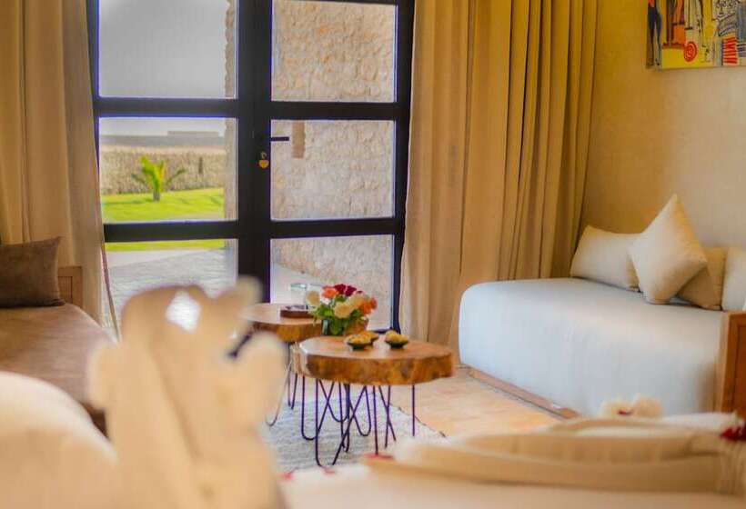 Baberrih Hôtel Hospitality Palaces & Resorts is located in Tissa Moulay Bouzerktoune, Essaouira. This accommodation offers a unique experience in a charming coastal city known for its historic medina, vibrant arts scene, and beautiful beaches. Essaouira is famous for its strong winds, making it a popular destination for windsurfing and kitesurfing. Visitors can explore the UNESCO World Heritage-listed medina, enjoy fresh seafood, and immerse themselves in local culture.
