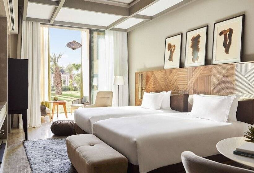 Park Hyatt Marrakech is a luxurious 5-star accommodation located in the Al Maaden Golf Resort in Marrakech. This upscale hotel offers elegant rooms and exceptional amenities, making it an ideal choice for travelers seeking comfort and sophistication. Enjoy stunning views of the Atlas Mountains and access to a world-class golf course. The hotel features a spa, fine dining options, and beautifully landscaped gardens, ensuring a relaxing and memorable stay in the vibrant city of Marrakech.