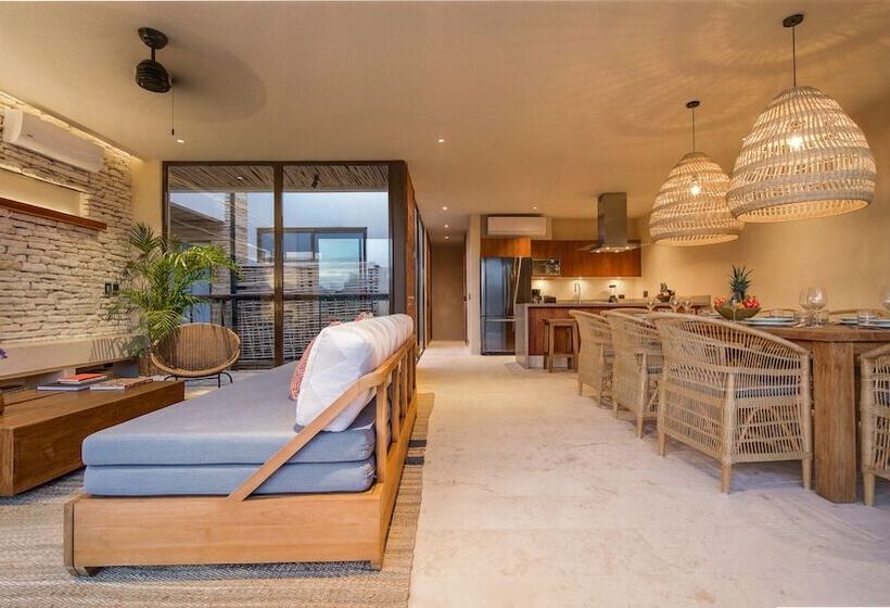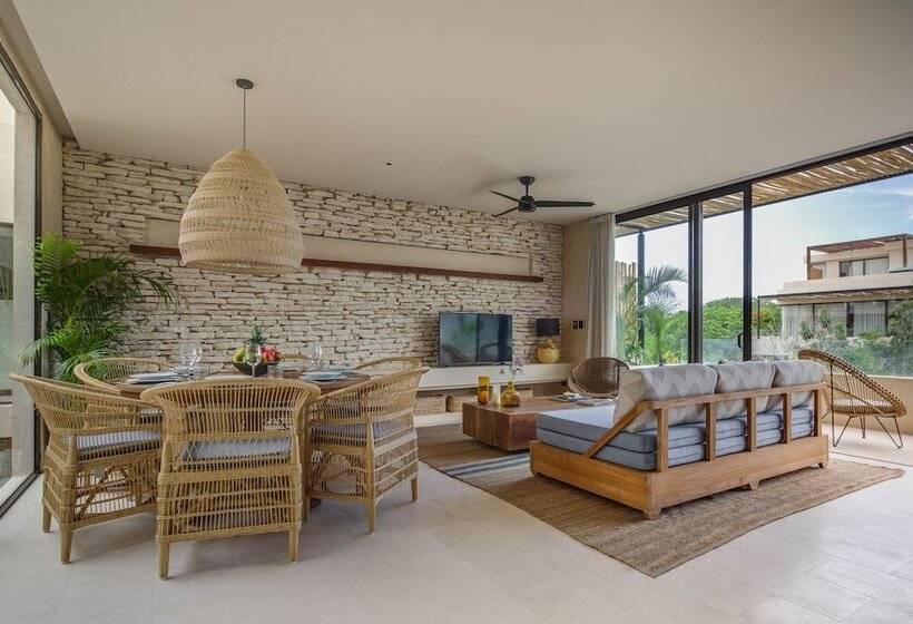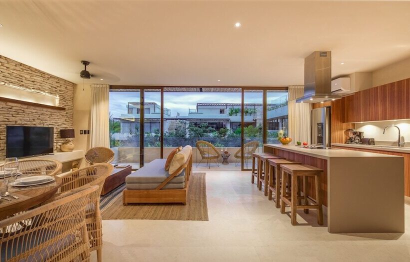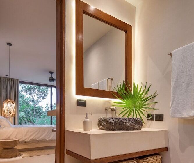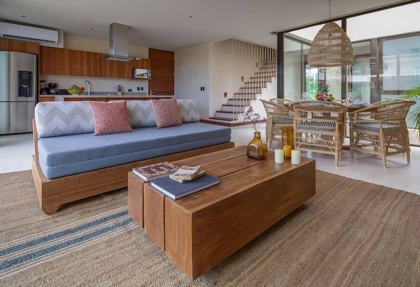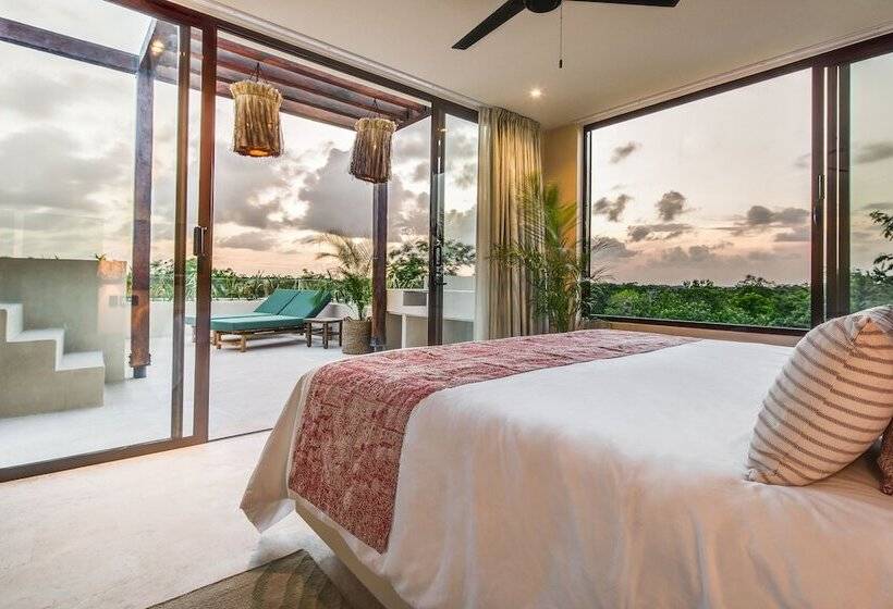 Copal Tulum is located in the Aldea Zama neighborhood of Tulum, specifically at Ixchel. This accommodation offers a unique experience in one of Mexico's most popular destinations, known for its stunning beaches, vibrant culture, and ancient ruins. Tulum is famous for its eco-friendly resorts, crystal-clear waters, and a laid-back atmosphere, making it a perfect getaway for relaxation and exploration.